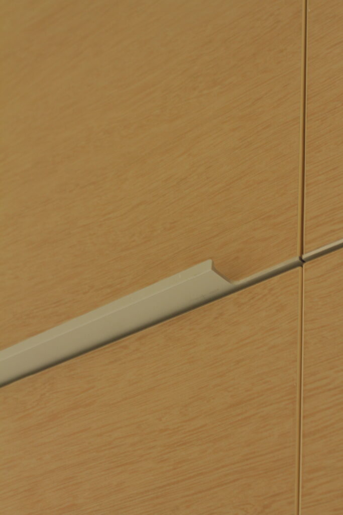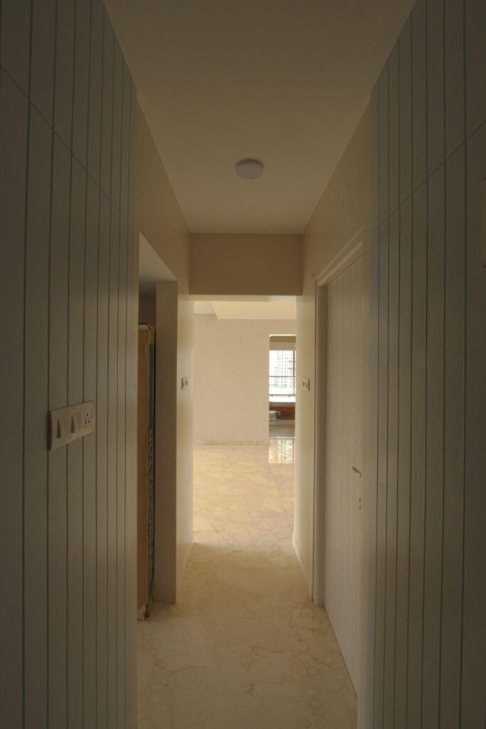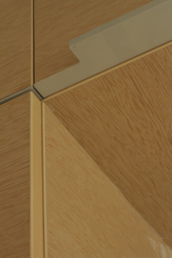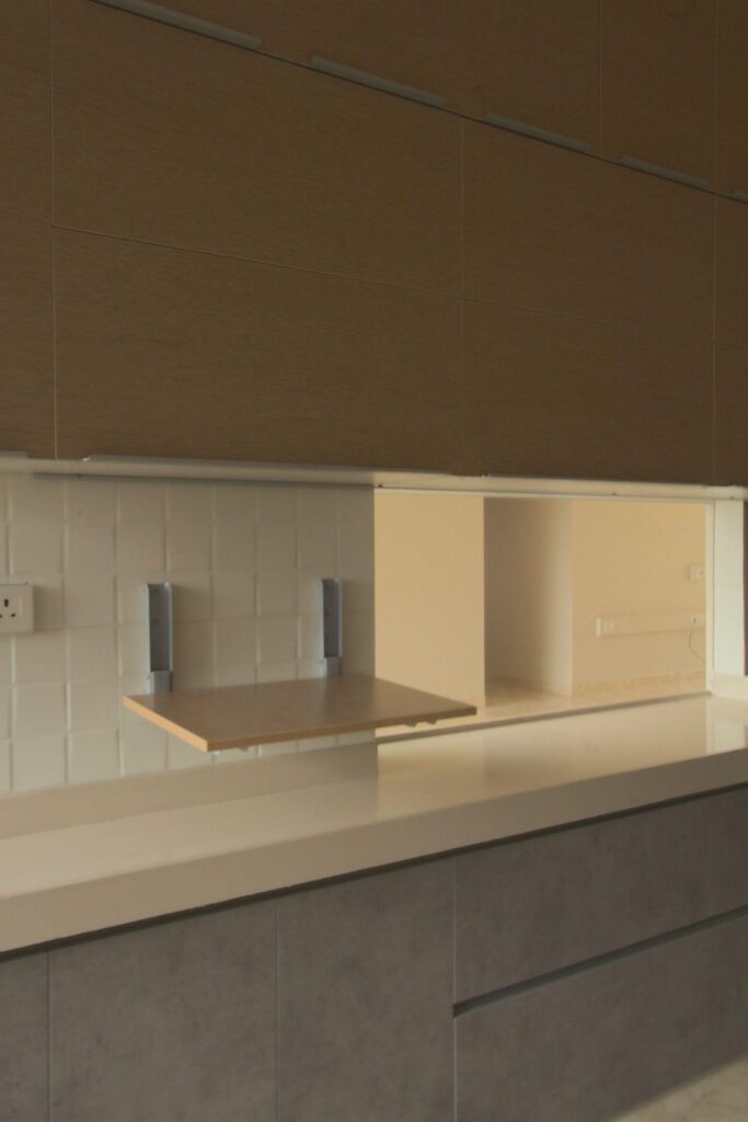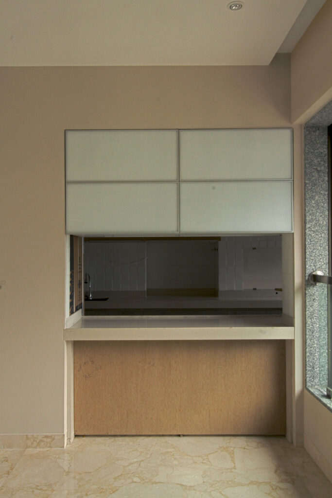 Subtle partitions, modular interventions, and concealed storage enhance the usability of each room while keeping the aesthetic unburdened. The kitchen, in particular, became a study in efficiency and lightness—its modular units blending function with clean geometry.